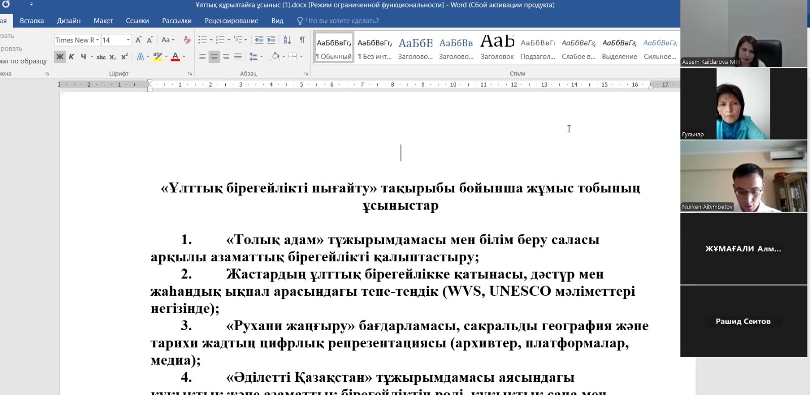 Ұлттық құрылтайға ұсыныстар талқыланды