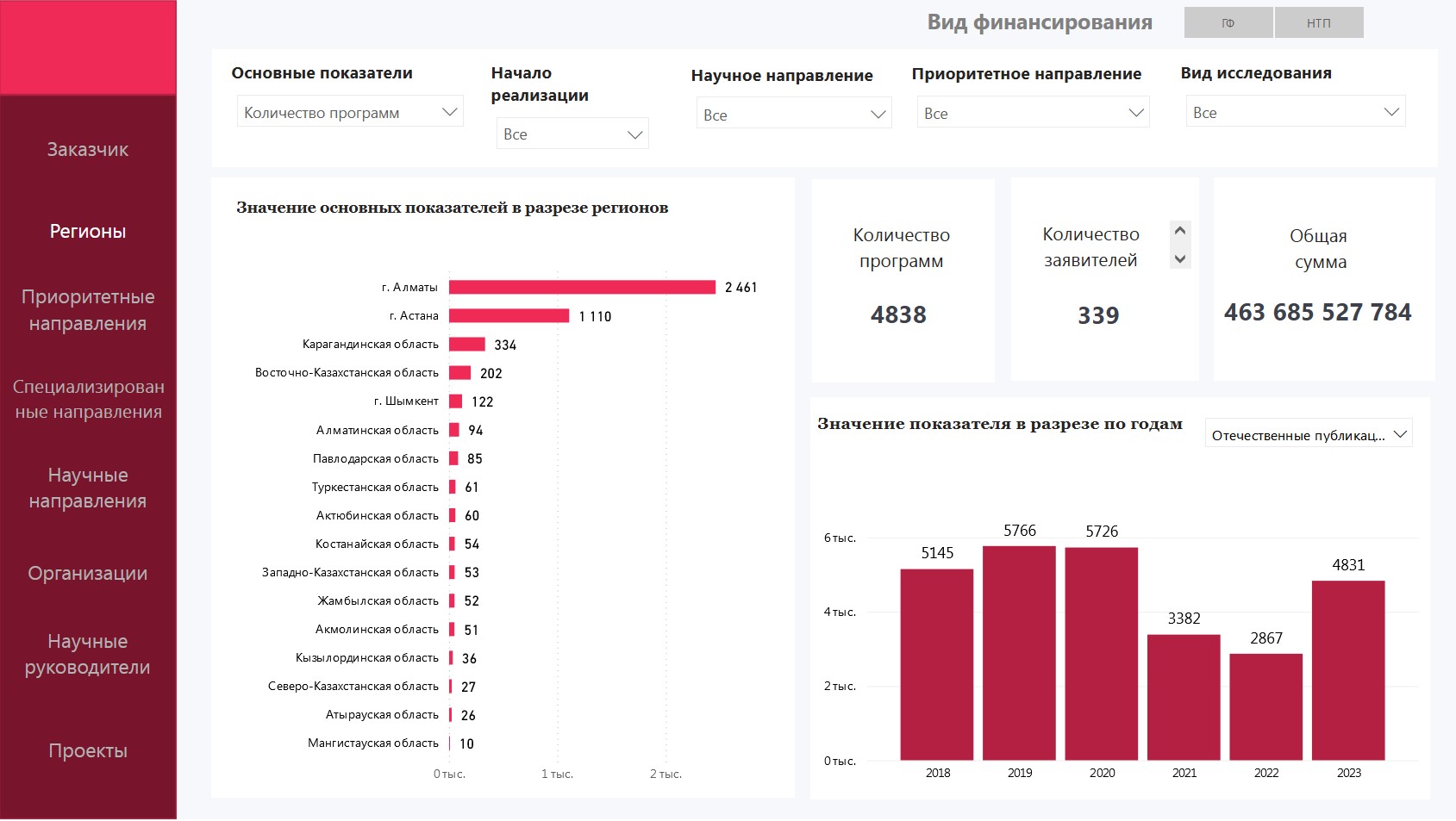 Аналитические данные о финансировании науки в Республике Казахстан